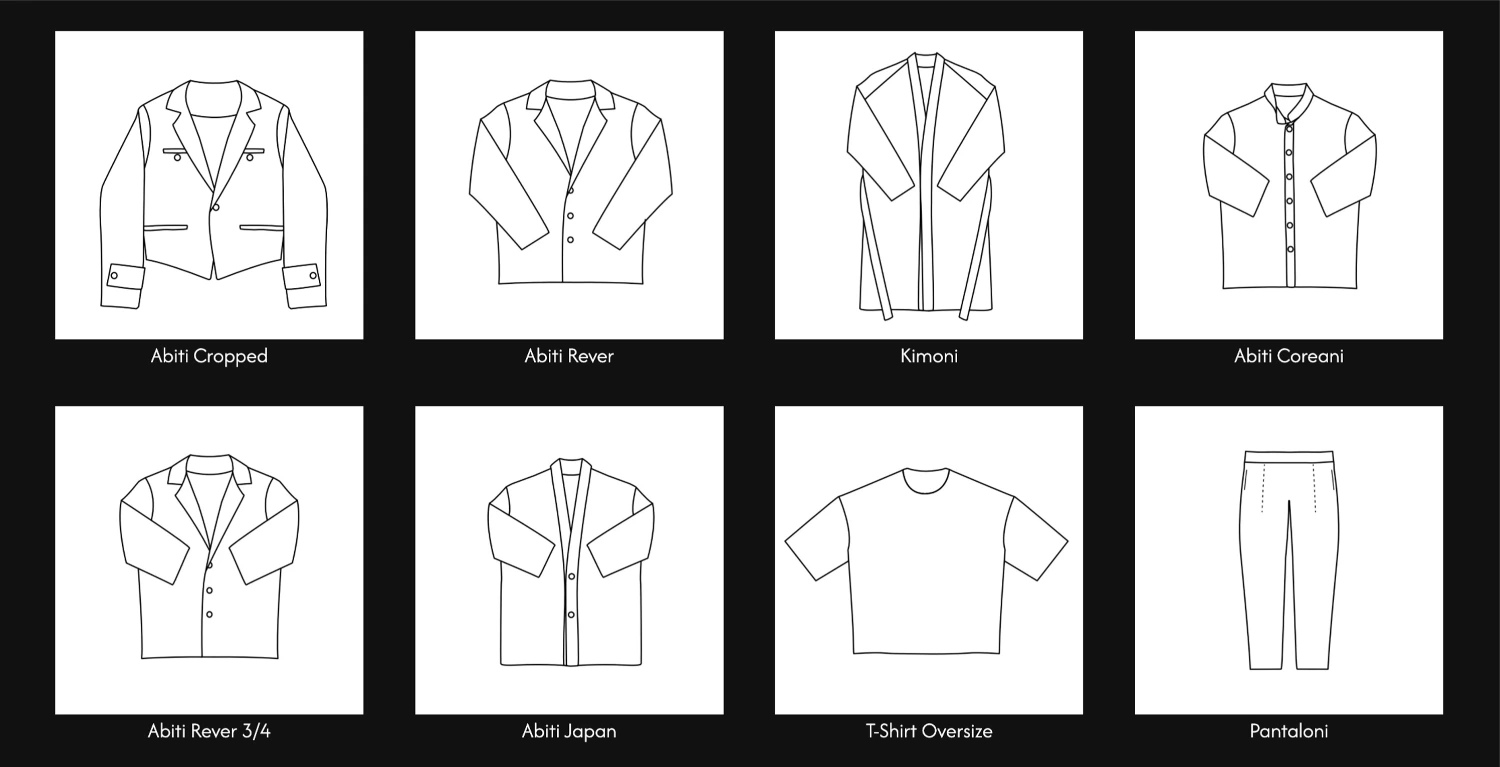 Oltre a shooting fotografici in alta definizione per prodotti e texture, sono state realizzate grafiche che riproducono fedelmente i capi, creando un linguaggio visivo unico che esalta la precisione sartoriale.